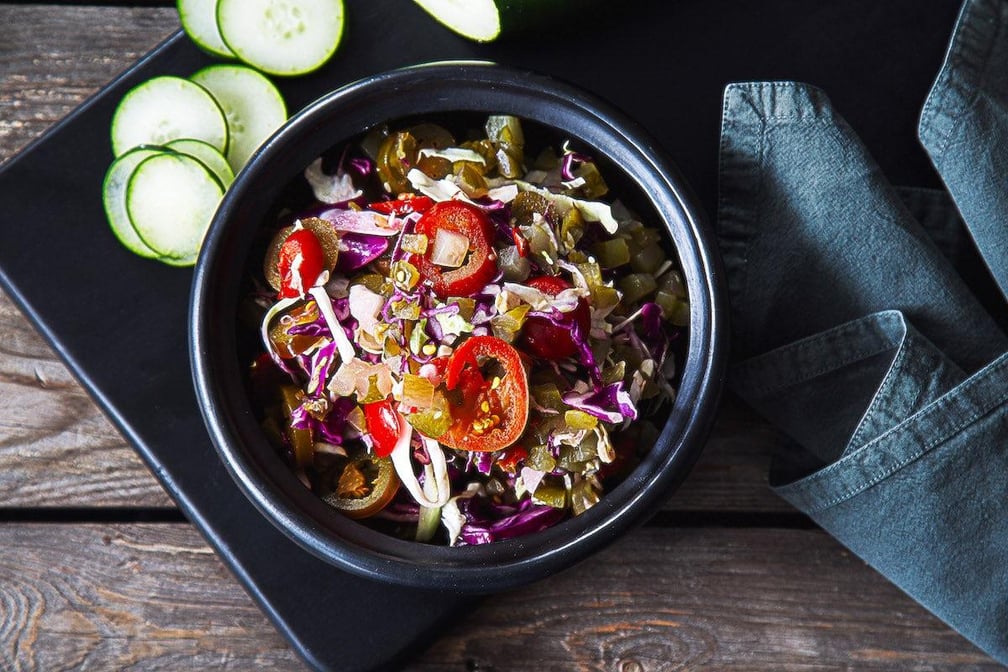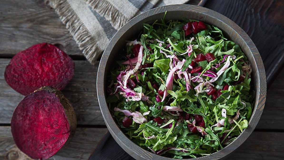 Salad or grain bowl with your choice of protein. Comes with garbanzo beans, wild arugula, cabbage, diced beets, diced pickles and tahini sauce.