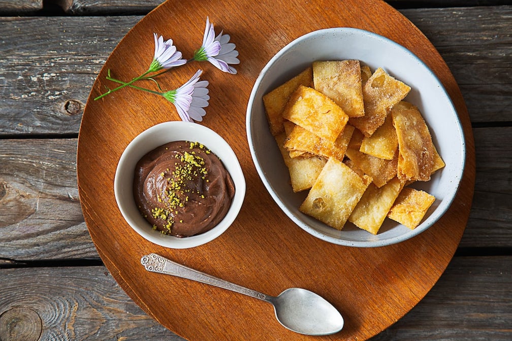 Crunchy and seasoned with za'atar. Comes with a small dip, your choice of hummus, tzatziki, or garlic spread.