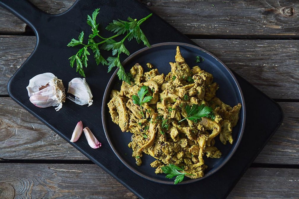 Juicy cubed chicken breast marinated in a blend of spices and finished with tomatoes.